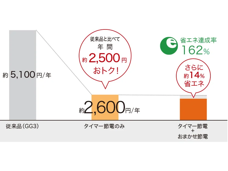 使用するときだけお湯を作るので、連続使用でもお湯が冷たくなりません。