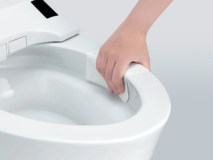 フチ裏をなくした形状が進化。手前から奥までフチをなくして、汚れが見えにくかった死角もありません。フチを握るようにしてふくだけで掃除できます。