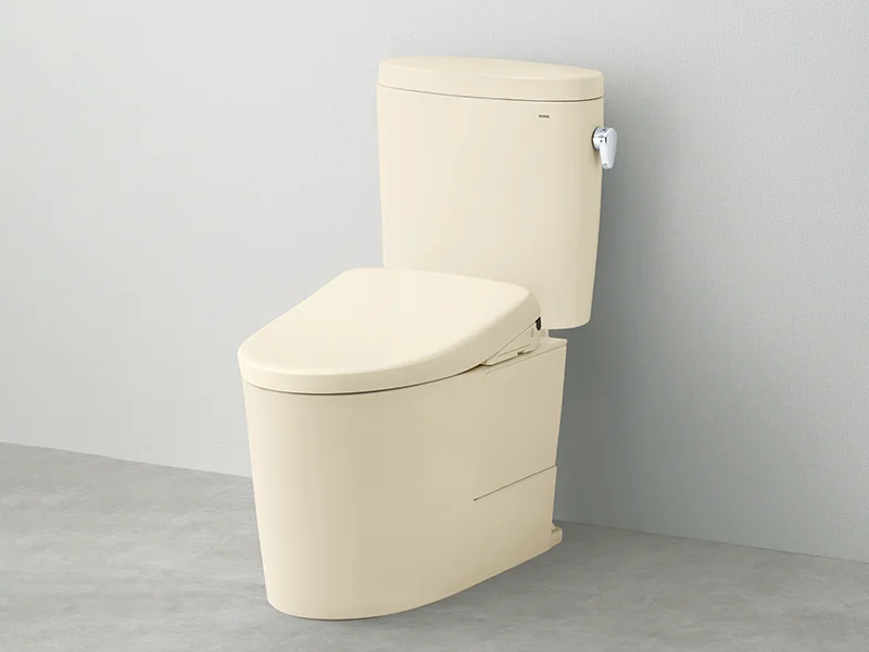 丸みを帯びたタンク形状に加え、便器側面の凹凸をサイドカバーで覆いました。アプリコットと便器とのすき間を極力抑えたすっきりデザインで、お掃除がずっとラクになりました。