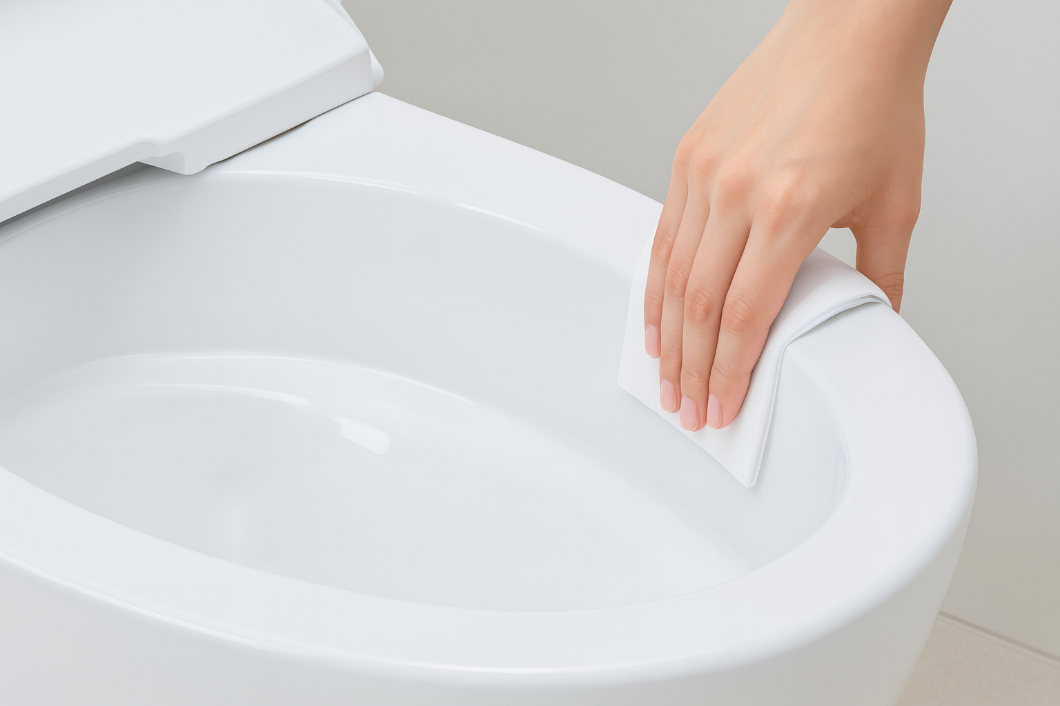 従来の衛生陶器ではできなかった「ガンコな水アカ」も「汚物」もどちらも落とせる、お掃除ラクラクな衛生陶器です。