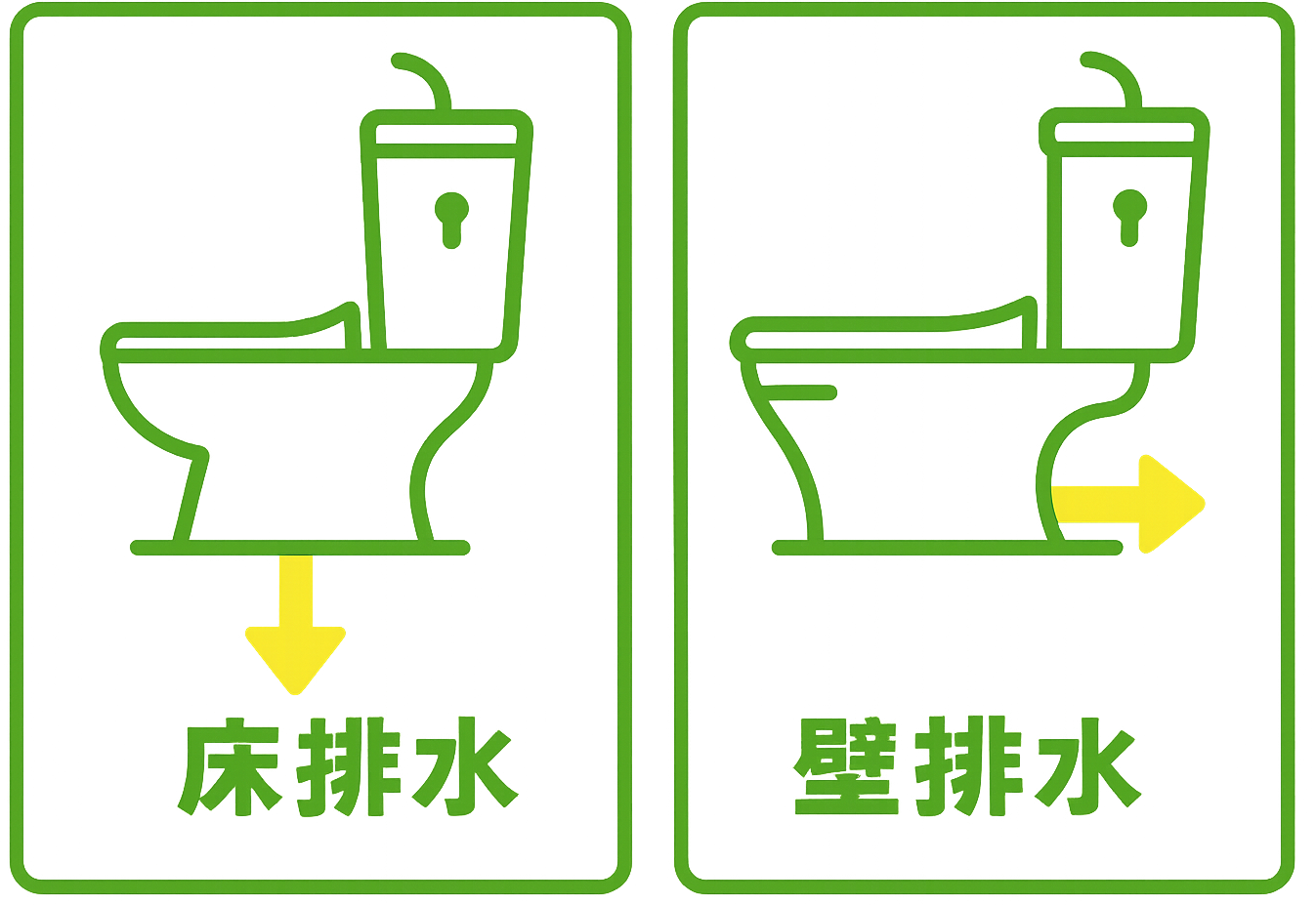 トイレの排水方法は、大きく分けて「床排水」と「壁排水」の2つに分類されます。