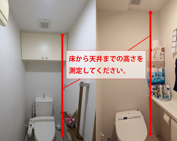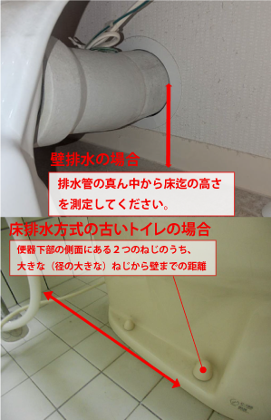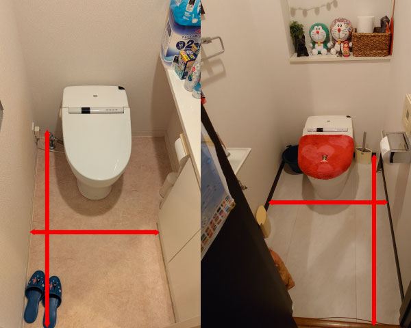 便器と前の壁までの距離が確認できるアングルで床全体が入るように撮影してください。