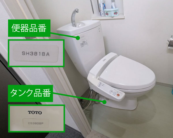 TOTOは「CS」「C」(便器品番は左側面、タンク品番は正面か左側面) LIXIL(INAX)は「C」「BC」「GBC」(便器品番は左側面、タンク品番は左側面) Panasonicは「XCH」「CH」(便器品番は左右どちらかの側面、タンク品番は記載がないモデルもございます。) から始まるものが便器とタンクの品番になります。 ※品番がわからない場合は、「不明」とご入力ください。