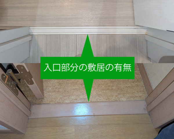 トイレ入口部分に敷居があるか確認できるように撮影してください。敷居が無い場合も撮影をお願いします。